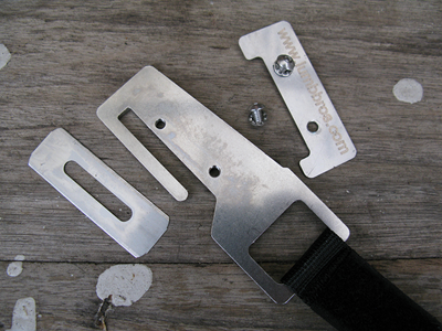 Anchor Trolley/Gunwale LinesFirst test was with a piece of standard low stretch 4mm anchor trolley rope. I've had trouble cutting this in the past with safety knives. The Safety Fast Cut Knife went through it like butter.  ParacordParacord, some still use it for mud anchoring in shallow waters with a hand winder. Cut cleanly through.  Anchor Warp4mm Anchor Warp as comes with most Diver's SMB reels. A stiff tightly woven multistrand line. Cut with ease.  Strap WebbingStandard webbing as found on many hatches. Due to the adjustment to the blade to accommodate the finder lines the strap was too thick to run down the blade.  |