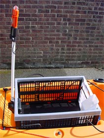 At the opposite end I have fitted a Scotty Mounting Bracket No. 241 and Rail Mount Adapter No. 242, this allows the use of a Scotty SEA-Light No. 824. The holes in the crate had to be filed with a round file to allow the bolts to fit, doing this carefully will also make for a very secure fit.